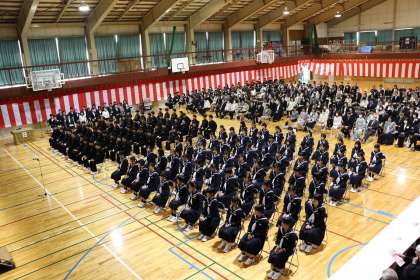 14時より入学式を行いました。校長先生の式辞で、「本気」「根気」「勇気」の3つの「気」を大切にするよう話がありました。新入生の皆さんの聞く姿勢は、真剣そのものでした。