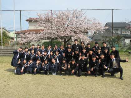 2限学活の時間に、桜の下で写真撮影を行いました。春の日差しがやわらかく、撮影日和となりました。