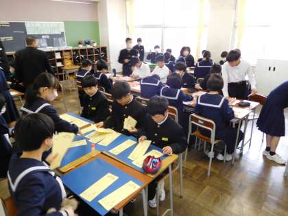 2年生は2限目に、委員会決めと教室掲示の作成をしました。