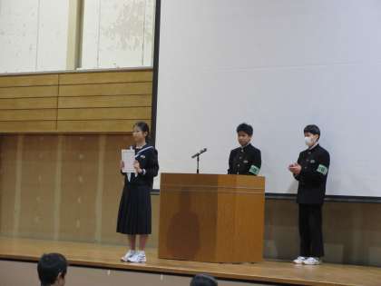 4月12日(金)生徒会 1学年執行委員委嘱式 公開日 2024/04/12 更新日 2024/04/12 第3学年 生徒会長から1年生代表生徒に、執行委員委任状を渡しました。これから全校生徒で北中を盛り上げていきましょう。
