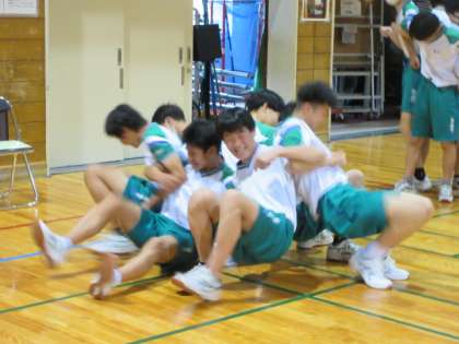 4月16日(火) 授業の様子(3学年) 公開日 2024/04/16 更新日 2024/04/16 第3学年 保健体育、体つくり運動の様子です。みんなで腕を組んで「せーの」で立ち上がります。あれ?これがまた、なかなか難しい・・・