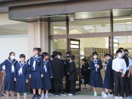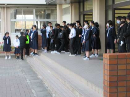 今日も多くの生徒が、生徒玄関でのあいさつ運動に参加しています。元気です。