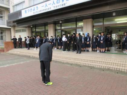 4月23日(火) 生徒玄関の様子 公開日 2024/04/23 更新日 2024/04/23 北中NEWS 今日も「あいさつ運動」に参加した生徒が多かったです。生徒会長の号令で、終了です。今日も、みなさんありがとうございます!