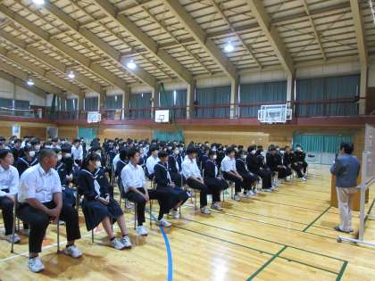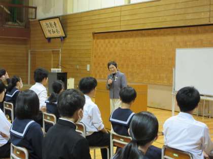 4月24日(水)平和講話(3学年) 公開日 2024/04/24 更新日 2024/04/24 第3学年 来月の修学旅行の事前学習として、広島より石原智子さんをお迎えしてお話をしていただきました。真剣に耳を傾ける姿に学ぼうとする気持ちを感じます。