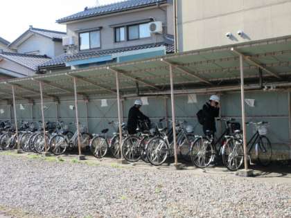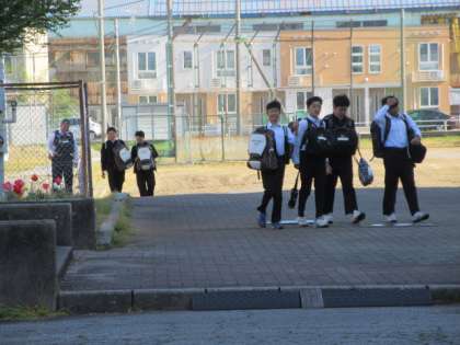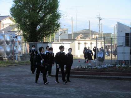 生徒が登校してきました。少し風が強いですが、晴れて気持ちのよい朝になりました。