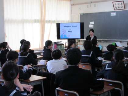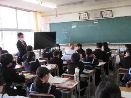 英語と社会の授業の様子です。先生の問いかけに、答えています。