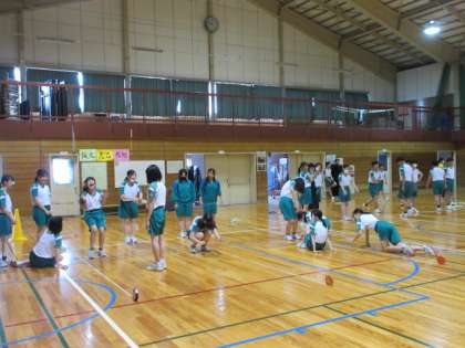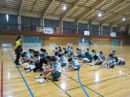 4月30日(火)授業の様子(3学年) 公開日 2024/04/30 更新日 2024/04/30 第3学年 グラウンドを走って準備運動完了!しかし、降雨のため体育館に移動して「立ち幅跳び」の計測です。頑張っています。