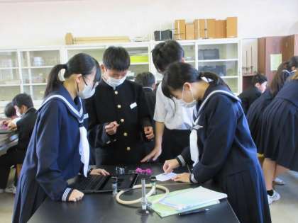 理科の授業では、花の観察をしていました。花のつくりを調べ、写真に撮っているところでした。