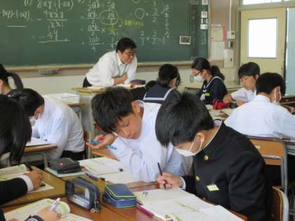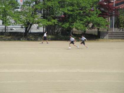 5月2日(木) 授業の様子(2学年) 公開日 2024/05/02 更新日 2024/05/02 第2学年 気持ちのよい青空の下で、保健体育の授業は50m走の計測でした。クラウチングスタートも上手にできるようになりました。 数学では、偽ループになって先生や友達に聞きながら問題演習をしていました。