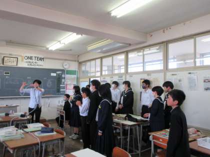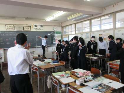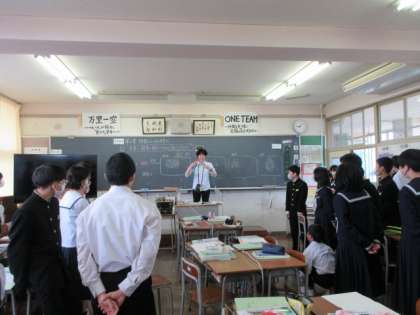 理科の授業の様子です。水素と酸素を化合させて、水ができる実験です。「バン!」と音が鳴って、「水」ができました!成功に拍手!