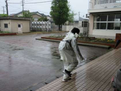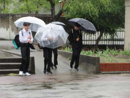 雨の日、自転車通学生は合羽が必需品です。自転車小屋から玄関までも合羽姿になります。
