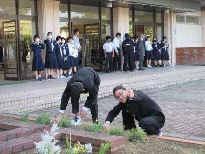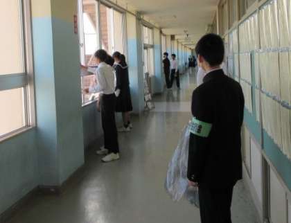 生徒会主催のHCP活動は、廊下の窓ふき掃除です。多くの生徒が参加しています。花壇の除草もありがとう。気持ちのよい朝です。