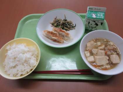 今日は、中華の献立です。焼きぎょうざは、皮がパリパリ派ともちもち派に好みが分かれますが、今日はもちもちぎょうざでした。
