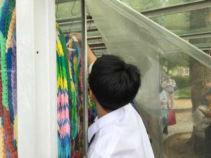 8:15に平和の鐘が鳴りました。その後、みんなで黙祷し、千羽鶴を奉納し平和への思いを高めました。