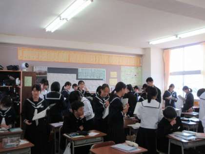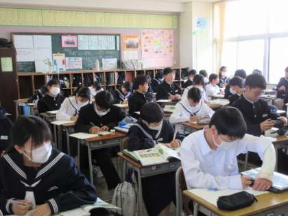 5月16日(木) 授業の様子(1学年) 公開日 2024/05/16 更新日 2024/05/16 第1学年 学校では、1年生も2年生も授業に意欲的に取り組んでいます。 英語は、インタビュー活動の終了10秒前のところでした。