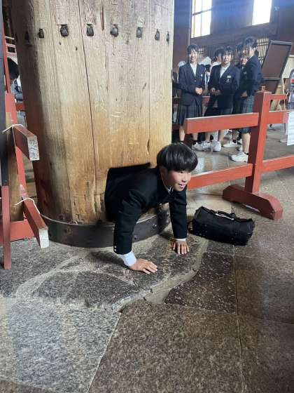 大仏殿の柱の穴くぐり&おみくじ