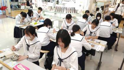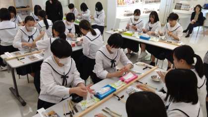 2組は筆作りに挑戦中です。今は糊入れの作業をしています。