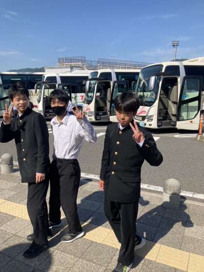 この後、もう1カ所で休憩をとり、学校に帰着します。3年生の保護者の皆様には、高速道路を降りた時点と、8号線を降りた時点でtetoruで連絡します。