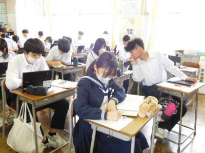 5/20(月)修学旅行事後学習 公開日 2024/05/20 更新日 2024/05/20 第3学年 3年生は修学旅行が終わり、事後学習を行いました。修学旅行で学んだこと、経験したこと等をレポートにまとめました。