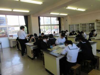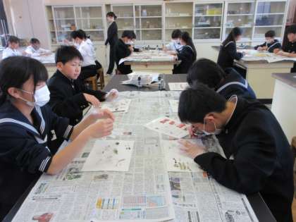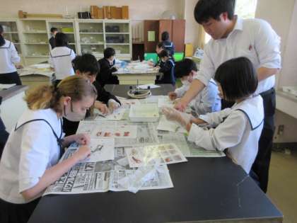 理科の授業の様子です。 海老の解剖中でした。楽しそうでした。