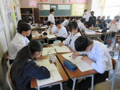 数学の授業の様子です。問題演習をしていました。疑問点は、聞いて解決できたかな。