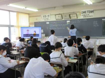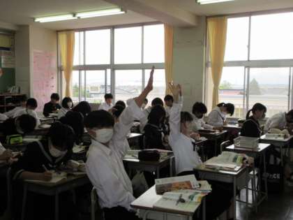 英語の授業の様子です。挙手をする人が多く、意欲的です。