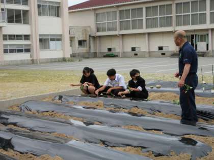5月24日(金) 北中ファーム 公開日 2024/05/24 更新日 2024/05/24 北中NEWS 北中ファーム作業を始めました。今日は、サツマイモの苗植えに、ボランティアとして多くの生徒が参加してくれました。