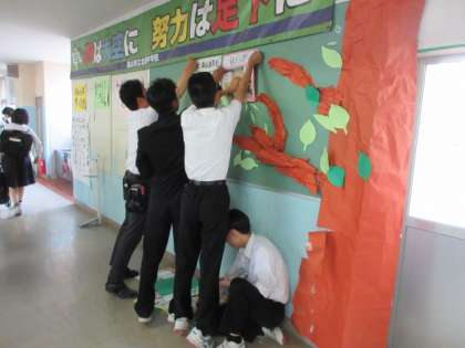 生徒会執行部が、玄関前の掲示物を整頓しました。次の掲示物が楽しみです。