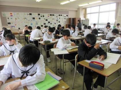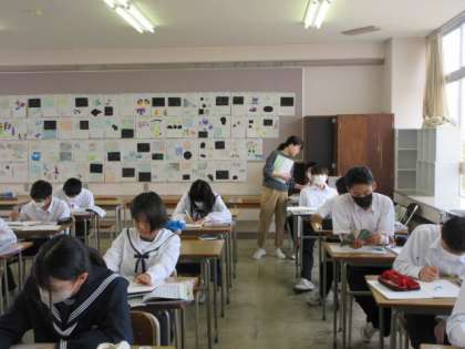 美術の授業の様子です。図、文字、配置いろいろなことを考えて作業していました。