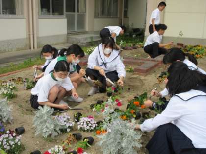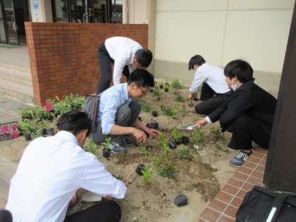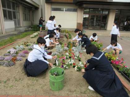 放課後、花壇の整備をしました。多くの生徒がボランティアとして、新しいお花を植えたり、種をまいたりしました。ありがとうございました。