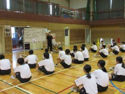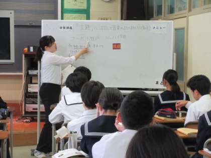 教育実習の先生の授業です。音楽と保健体育の2人の実習生がきています。