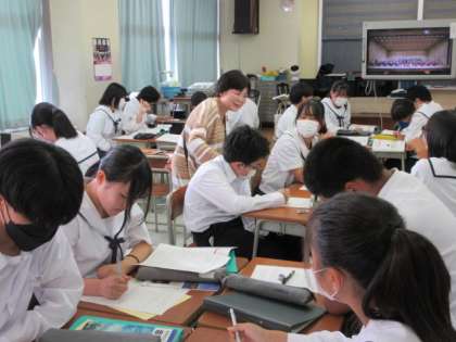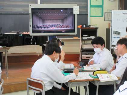 音楽は、鑑賞の授業でした。気付いたことをレポートにまとめていました。