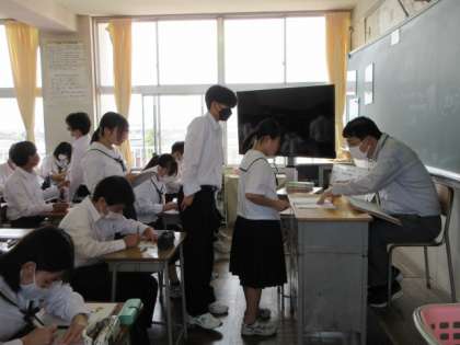 理科と数学の授業の様子です。理科は実験の準備をするところでした。班で協力していました。