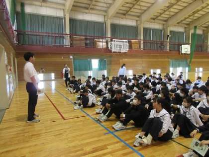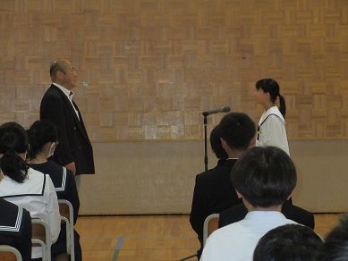 明日の校外学習に向けて、結団式を行いました。入学してからあっという間の2ヶ月間でしたが、いよいよ明日は1学年全員の団結力を試す大事な日です。校長先生や代表生徒の言葉にもあった「マ(マナー)・モ(モラル)・ル(ルール)を守り」、校外学習を全員で成功させましょう!