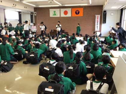 砺波青少年自然の家に到着しました。 この後、入所式を行い、午前中はイニシアティブゲームに挑戦します。