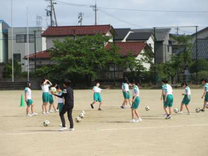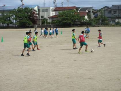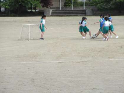 6月5日(水) 授業の様子(3学年) 公開日 2024/06/05 更新日 2024/06/05 第3学年 保健体育、サッカーの授業の様子です。パス練習をしてから、ゲームをしていました。天気もよく、外での活動が心地よさそうです。なかなかのボールさばきです。