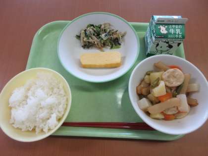6月5日(水) 今日の給食 公開日 2024/06/05 更新日 2024/06/05 給食 今日は何を書こうかなあ、「こまったな]と思っていたら、なんと今日の献立は、「こまつな」のごま和えでした! 「小松菜」は、ビタミン、鉄分、カルシウムが豊富な野菜で、ごまと合わせて栄養満点!です。 <今日の献立> ごはん 牛乳 厚焼き卵 小松菜のごま和え 関東だき