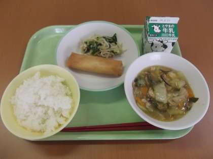 今日は令和6年6月6日、つまり6が3つそろった日です。地域や宗教によって、縁起がいいとされたり不吉とされたりするなど、とにかく意味合いの強い日だなぁと思います。今日の給食のメニューは、中華風です。中国では「全て順調にうまくいく」を意味する「六六大順」という成語があり、大変縁起のよい数字とされています。さらに、八宝菜は「たくさんの宝を集めたようなおいしいおかず」という意味なので、今日の献立は今日という日にバッチリ合っていますね。だからと言って、8歩歩くたびに大騒ぎしないでください。八歩うざいと言われますよ。
