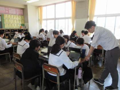 6月7日(金) 授業の様子(2学年) 公開日 2024/06/07 更新日 2024/06/07 第2学年 社会、国語、英語の様子です。国語は、旅行の魅力的な提案を考えていました。高級ホテルや美味しい店等、おすすめスポットを探しているようでした。英語の、ペアで会話が楽しそうです。