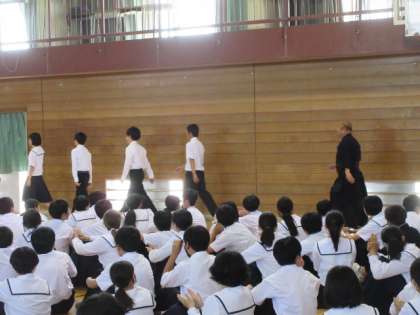 選手が入場してきました。あれ、校長先生?