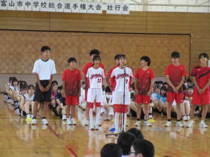 各部の決意表明です。 野球部、ソフトボール部、ソフトテニス部男子です。