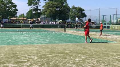 男子ソフトテニス部です。 今日は、個人戦に臨みます。頑張れ、北中生!