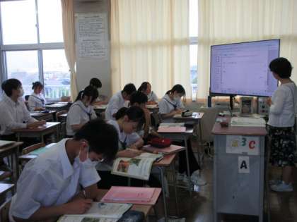 英語と社会の様子です。耳と目を存分に使って、情報を得ていました。真剣です。