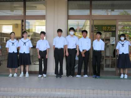 今日も元気に、あいさつ運動をしていました。「おはようございます!」