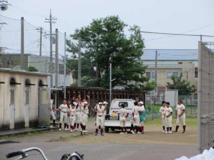 野球部は、市民体育大会のため荷物を準備して出発しました。頑張れ、野球部!応援しています。