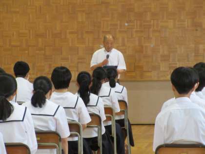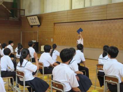 6月28日(金) 「社会に学ぶ『14歳の挑戦』」に向けて 公開日 2024/06/28 更新日 2024/06/28 第2学年 6限に、「14差の挑戦」実行委員が中心となり、「14歳の挑戦」決起集会を行いました。校長先生から、5日間すべてを最後までやりきる覚悟をもって臨もうと激励を受けました。