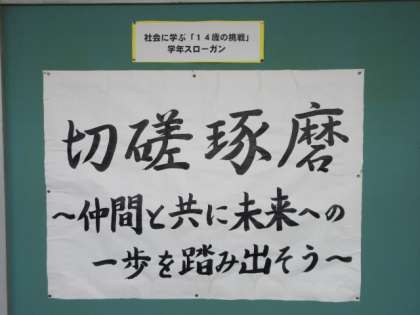6月28日(金) 「社会に学ぶ『14歳の挑戦』」に向けて 公開日 2024/06/28 更新日 2024/06/28 第2学年 学年主任から、最終確認です。スローガンのもと、充実した5日間にしましょう。
