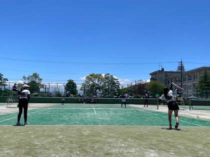 女子ソフトテニス団体戦で、善戦しましたが本校Aは2回戦、Bは初戦で敗退しました。