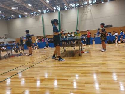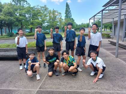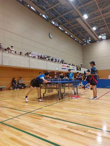 卓球部です。男女とも個人戦に出場し、全力でがんばりました。