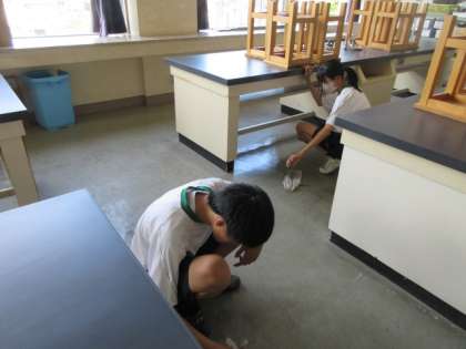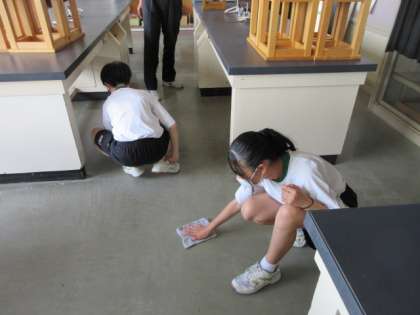 7月3日(水) 社会に学ぶ「14歳の挑戦」 公開日 2024/07/03 更新日 2024/07/03 第2学年 今日学校に登校した生徒たちは、理科室の床磨きをしました。暑い中、ありがとうございました。明日から、また事業所で頑張ってね。